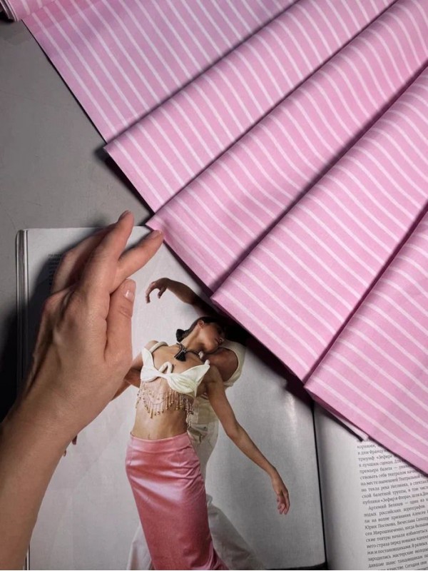 Розовая. С крэш эффектом. Состав 74% орг. х/б, 25% п/э, 1% эластан. Ширина 1.4 Плотность 85 гр/м2..