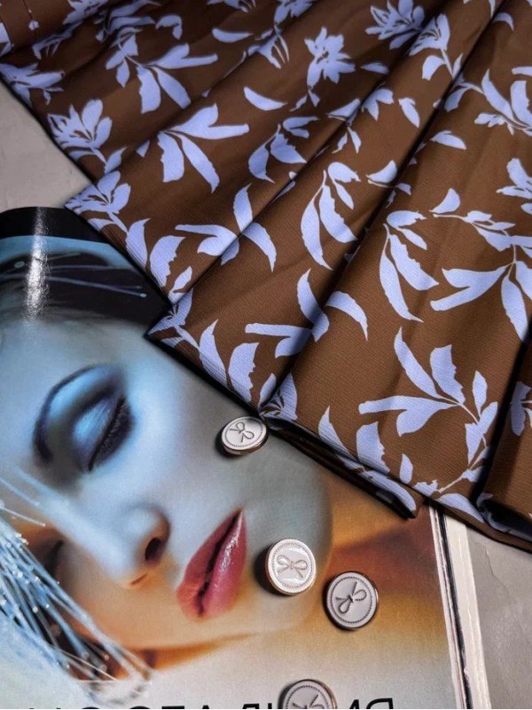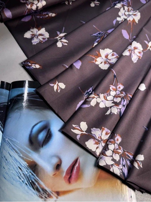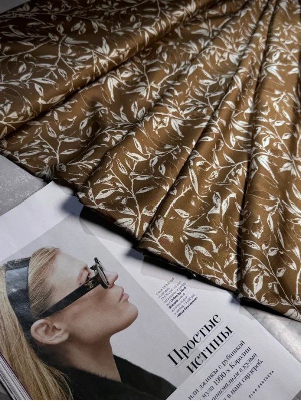 Шелк " Армани " . Оттенок " Коричневый с белыми цветами"