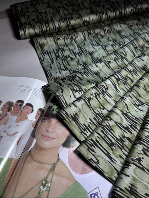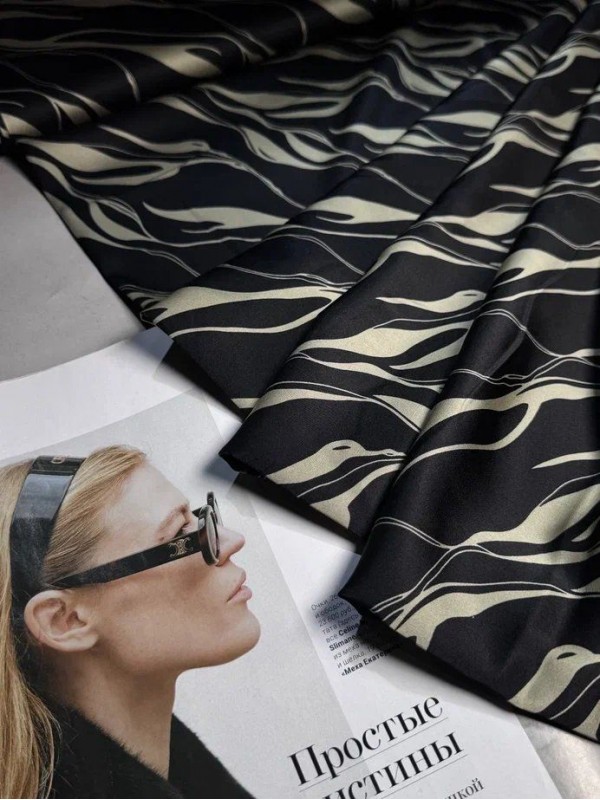 Шелк " Армани " . Оттенок " Фисташковая абстракция на черном "