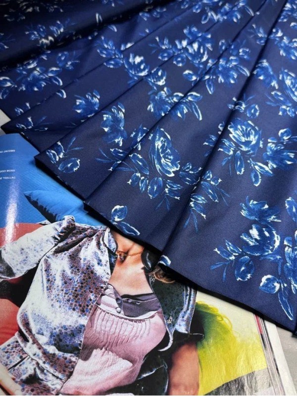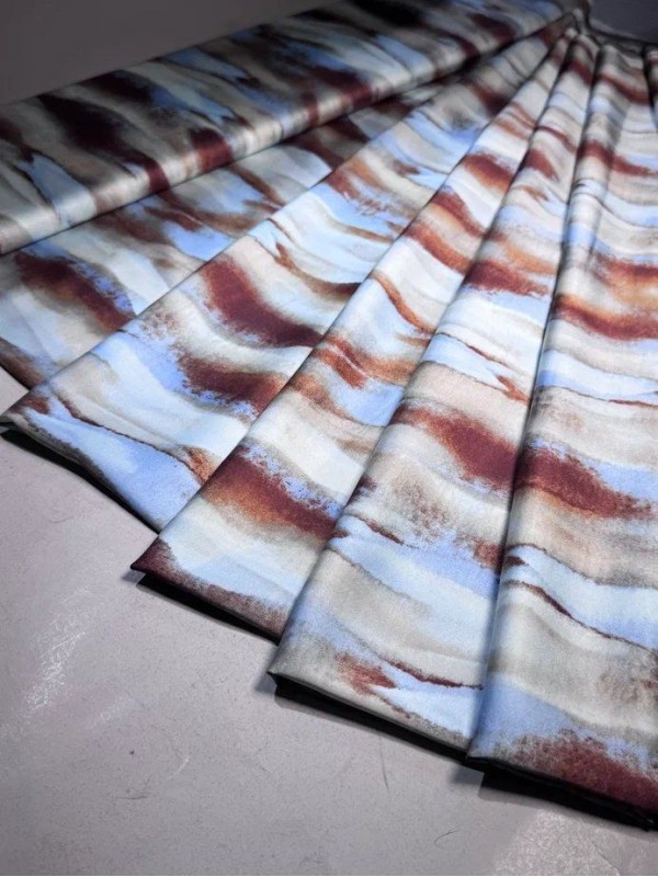 Шелк " Армани " - крэш . Оттенок " Голубые цветы на коричневом"