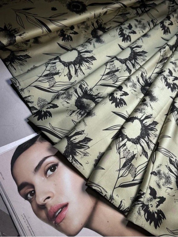 Шелк " Армани " . Оттенок " Черные цветы на фисташке"