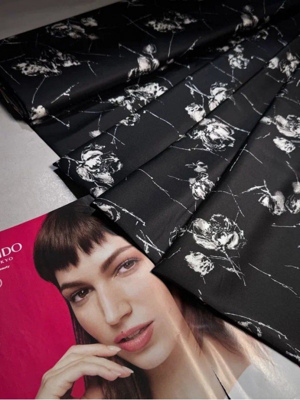 Шелк " Армани " . Оттенок " Белые розы на черном"